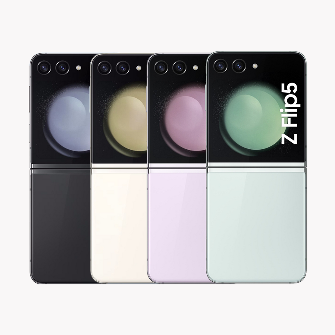 The Samsung Galaxy Z Flip 5 is a clamshell-style foldable smartphone featuring a compact design, a redesigned hinge that closes flat, and a larger cover screen for easier use when folded. It offers cutting-edge technology in a stylish, pocketable form factor, with an Armor Aluminum frame, Gorilla Glass Victus 2 protection, and IPX8 water resistance.